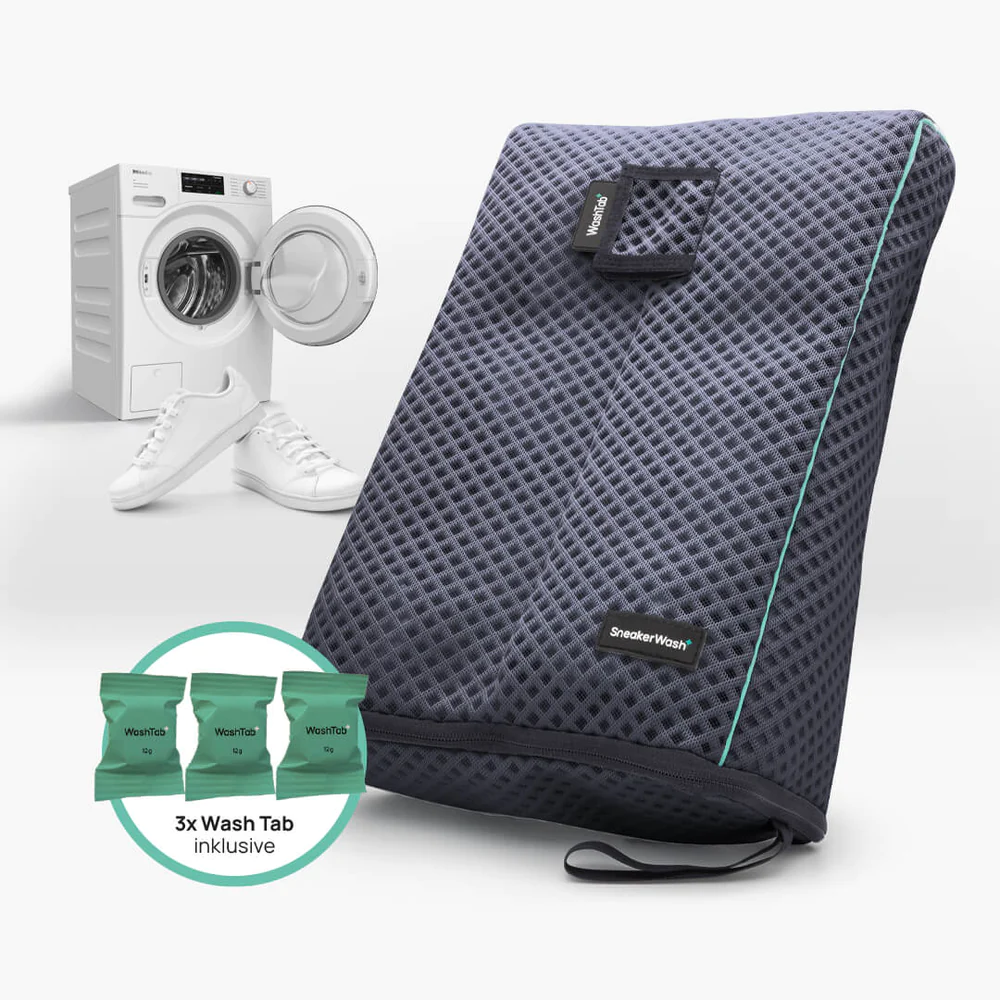 SneakerWash von Miele macht die Reinigung von Sneakern in der Waschmaschine einfach und effektiv. Mit einem speziellen Wash Bag und eigens entwickelten Wash Tabs werden Schuhe gründlich gereinigt und geschützt. Hartnäckige Flecken und Gerüche verschwinden, und die Sneaker sehen wieder wie neu aus. Entwickelt von Miele-Mitarbeitern, bietet SneakerWash eine schonende Alternative zum Neukauf von Schuhen.